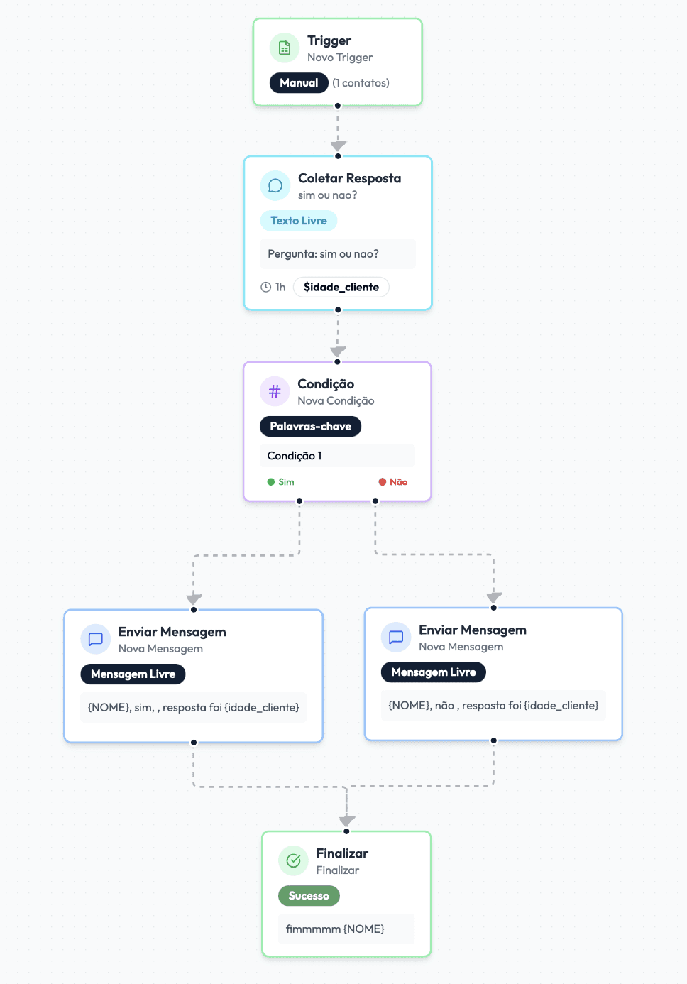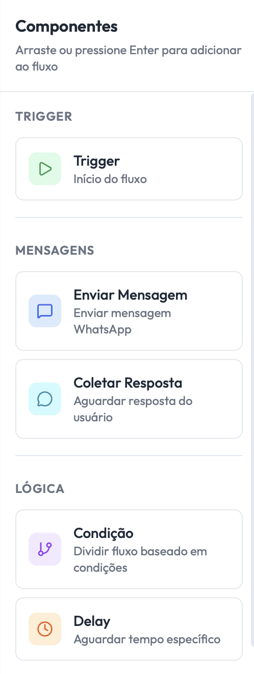 Monte jornadas de atendimento com uma interface visual. Dispare mensagens automáticas em ações personalizadas. Teste com simuladores e ajuste tudo sem precisar programar.